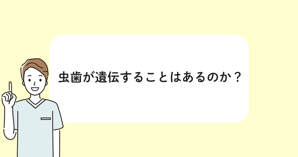 虫歯によって歯の痛みが生じると、日常生活にさまざまな悪影響を及ぼします。 そのため、すべての方が「できれば虫歯になりたくない」と考えているでしょう。 では、虫歯は全身疾患などと同じように、遺伝することがあるのでしょうか? 今回は、虫歯と遺伝の関係性について解説します。 虫歯が遺伝することはある? 自身が虫歯を発症したとき、「そういえば親もよく歯科クリニックに通っていた」ということを思い出すこともあるでしょう。 しかし結論からいうと、虫歯そのものは遺伝しません。 なぜなら、虫歯の原因はあくまで虫歯菌への感染が原因だからです。 生まれたばかりの赤ちゃんの口内には、虫歯菌が一切存在しません。 言い換えると、生まれたときから口内が虫歯菌だらけということはあり得ないというわけです。 また虫歯菌が存在していたとしても、それが必ずしも虫歯の発症につながるとは限りません。 セルフケアが不十分であることにより、虫歯菌が酸やプラークをつくり出すことで虫歯は発症・進行します。 そのため、両親がよく歯科クリニックに通っていたとしても、その子どもにあたる方の通院頻度が増えるというわけではありません。 虫歯になりやすい体質が遺伝する原因4選 虫歯という疾患自体が直接遺伝することはありませんが、虫歯になりやすい体質は遺伝することがあります。 こちらは主に以下のことが理由です。 ・親子で似たような食生活を送る ・両親のブラッシングが不十分 ・エナメル質や唾液の問題が遺伝する ・歯並びが遺伝する 各項目について詳しく説明します。 親子で似たような食生活を送る 親子で虫歯が遺伝することはなくても、似たような食生活を送ると虫歯になりやすい体質は遺伝します。 例えば虫歯になりやすいガムやキャラメル、チョコレートなどの菓子類を両親がよく食べていた場合、その子どもにあたる方も同じような嗜好になります。 そのため、虫歯菌が歯を溶かしやすく、虫歯のリスクは高まります。 また酸性の食品を多く食べたり、ダラダラと長い時間食べ続けたりする習慣も、親から子へと引き継がれることがあります。 子どもは親の真似をするものですから、これらの影響を完全に防ぐことは難しいです。 一つ言えることがあるとすれば、子どもを持つ親御さんは子どもの歯の将来のために、見本となるような食生活を送る必要があります。 両親のブラッシングが不十分 先ほど、子どもは親の真似をするという話をしましたが、こちらは食生活だけでなくブラッシングにも言えることです。 例えば両親がブラッシングを面倒に感じている場合、子どもの仕上げ磨きやブラッシングの指導にもあまり力が入らない可能性があります。 その結果、子どもは丁寧なブラッシングの知識や技術を身につけることができず、虫歯になりやすい体質になってしまいます。 またブラッシングと言えば、1日3回行うイメージがあるかと思いますが、実際こちらは正しくありません。 1日3回行うことは理想ですが、大事なのはあくまでも1回のブラッシングを丁寧に行うことです。 「とにかく3回磨けば良い」という風に教えられた場合、数をこなすだけで満足してしまい、ブラッシングの効果は半減します。 エナメル質や唾液の問題が遺伝する 歯の表面には、エナメル質という硬い組織があります。 こちらは歯を物理的なダメージから守る役割があります。 しかし、生まれつきエナメル質が弱く、ダメージを受けやすいという体質の方がいます。 このような体質の方は、虫歯菌に歯が侵食されやすくなってしまいます。 また生まれつき唾液の分泌量が少ないという方もいます。 唾液には口内を洗い流す自浄作用、殺菌作用などがあるため、多く分泌されていればいるほど虫歯の原因となるプラークを洗い流せます。 言い換えると、唾液の分泌量が少なければ虫歯のリスクが高まるということになります。 これらの先天性の体質は、親から子に遺伝することがあります。 歯並びが遺伝する 歯並びが遺伝することも、虫歯になりやすい体質が遺伝する原因の一つです。 顎の大きさや形、歯のサイズや質、上顎と下顎の位置などは親子での遺伝性が認められています。 特に両親が上顎前突(出っ歯)、下顎前突(受け口)である場合、その子どもにも同じような歯並びが遺伝する可能性が高いです。 また歯並びが通常とは違ういわゆる不正咬合が見られる場合、歯ブラシの毛先が届きにくい箇所が増えるため、ブラッシングがしにくく虫歯のリスクが高まります。 さらに歯の隙間が多かったり、凸凹に生えていたりする場合、食べカスが詰まりやすく虫歯のリスクは必然的に高くなります。 まとめ 虫歯という症状自体は、がんのように遺伝性が認められるものではありません。 しかし親が虫歯になりやすい生活を送っていたり、歯並びが悪かったりする場合、その子どもも同じように虫歯を発症しやすくなります。 もちろん、しっかりブラッシングなどのセルフ