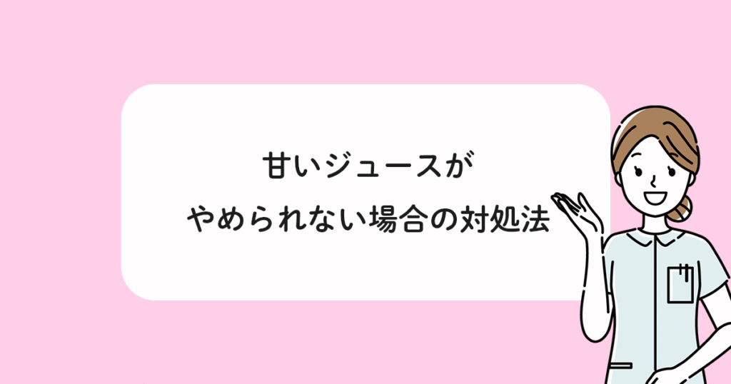 普段水分を摂取するとき、ジュースを好んで摂取するという方は多いかと思います。 中には甘いものをあまり食べないものの、ジュースだけは毎日のように摂取するという方もいます。 しかし、甘いジュースは虫歯の天敵です。 今回は、甘いジュースがなかなかやめられない場合の対処法を中心に解説します。 甘いジュースを摂取するデメリット 甘いジュースには、大量の砂糖が含まれています。 ここでいうジュースには、コーラやサイダーなどの炭酸飲料、カルピスなどの清涼飲料水が該当します。 果物100%ジュースについては、砂糖は含まれていなくても、果糖が含まれているため糖分の含有量は多いです。 また砂糖は虫歯菌のエサとなり、歯の表面を溶かす酸を生成します。 このことから、虫歯のリスクを高めます。 さらに、甘いジュースは他にもさまざまなデメリットがあります。 砂糖の摂取はもちろん肥満につながりますし、過剰摂取は血糖値の急上昇を引き起こし、糖尿病を発症させることも考えられます。 ちなみに、甘いジュースによる高血糖状態は、ペットボトル症候群につながるおそれもあります。 ペットボトル症候群は清涼飲料水ケトーシスとも呼ばれるもので、喉の渇きや体重減少、倦怠感などの症状が現れます。 重症化した場合、意識障害を引き起こすこともある危険な病気です。 甘いジュースがやめられない場合の対処法5選 どうしても甘いジュースを頻繫に飲んでしまうという方は、以下の対処法を試してみましょう。 ・水分補給は水やお茶にする ・食事で糖質をしっかり摂る ・徐々に甘さを減らす ・果物を丸ごと食べる ・ストレスを解消する 各項目について詳しく説明します。 水分補給は水やお茶にする 普段ジュースばかり飲んでいる方の中には、喉が渇いたタイミングで無意識に甘い飲み物を選んでいることがあります。 そのため、水分補給をする際は、意識して水やお茶を選ぶようにしましょう。 これらの飲み物については、砂糖が含まれていないため虫歯のリスクを高めてしまう心配がありません。 確かに、夏の暑い時期などは水分だけでなく、糖分や塩分も補給する必要があります。 だからと言ってスポーツドリンクなど、砂糖が大量に含まれたものばかり飲んでいると、虫歯の発症はなかなか避けられません。 おすすめの方法としては、糖分の多いジュースを飲んだ後、口をゆすぐように水やお茶を飲むという方法です。 これなら虫歯のリスクを減らしつつ、必要な成分を摂取できます。 食事で糖質をしっかり摂る 甘いジュースを日常的に飲んでいる方の中には、身体がエネルギーを求めることで、甘いものを欲する機会が多い方もいます。 このような問題は、食事から糖質をしっかり摂ることで対処できます。 例えばご飯やパンなど、単体では甘くない炭水化物をしっかり食べることで、エネルギー不足は解消できます。 またエネルギー不足が起こりにくいということは、甘いものを欲する機会も少なくなるということです。 もちろん炭水化物にも虫歯のリスクはありますが、直接砂糖を口内に入れるよりはかなりマシです。 徐々に甘さを減らす ジュースの甘さに慣れてしまうと、他の飲み物ではなかなか満足できなくなります。 その結果、甘いジュースがやめられないという方は、少しずつ飲み物の甘さを減らしていきましょう。 例えば最初は炭酸飲料などから始め、果汁100%ジュース、そしてそれを少し薄めたものに移行していきます。 さらに、その後はフレーバーティーなど、甘さ控えめな飲み物をメインに摂取するようにしましょう。 フレーバーティーは、そこまで甘さがないものの、フルーツやデザートなどさまざまな甘いもののフレーバーを味わうことができます。 そのため、甘くない飲み物の中では満足度が高いと言えます。 果物を丸ごと食べる 甘いジュースがなかなかやめられないという場合、果物を丸ごと食べる方法も試してみましょう。 果物の中には、そのままの状態で強い甘味を持つものがたくさんあります。 そのため、甘いジュースを飲むくらいであれば、まだ砂糖を摂取しない果物の方が虫歯のリスクを軽減しやすいです。 またリンゴなどの果物を丸ごと食べれば、甘みだけでなく食物繊維も一緒に摂れるようになります。 食物繊維は、歯の表面の汚れを落としてくれる役割があるため、虫歯予防に効果的です。 ストレスを解消する 甘いジュースをやめてしばらくの間は、飲めないことに対してストレスが溜まるでしょう。 しかしストレスが溜まった状態が続くと、ある日我慢できなくなり、大量に砂糖を摂取してしまう可能性があります。 そのため、ジュースを飲まない期間は別の方法でストレスを解消するようにしましょう。 例えば運動や趣味、リラックスする時間をつくるといった方法は効果的です。 まとめ 虫歯のリスクを減らすにあたって、甘いものが好きという趣向は大きな障害になります。 そのため、頻繫にジュースを